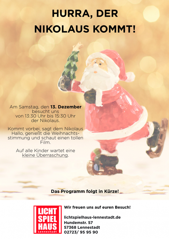 Am Samstag, den 13. Dezember kommt uns der Nikolaus von 13:30 Uhr bis 15:30 Uhr besuchen. Auf alle Kinder wartet eine kleine Überraschung.